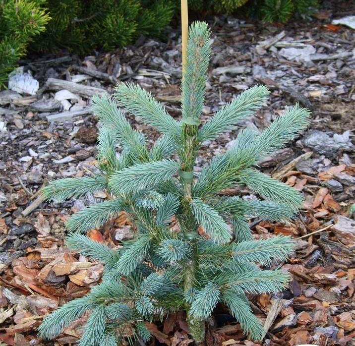 Молодой саженец ели сорта "Голубая Кейбаб" представляет собой колючее вечнозелёное растение, которое со временем формирует широкую колоновидную крону. В молодом возрасте крона этой ели асимметрична, но с возрастом становится более равномерной и плотной. Высота взрослого дерева составляет примерно 1,5-2 метра, а диаметр кроны может достигать 2-3 метра. Ежегодный прирост ели составляет около 8 см в высоту и 10 см в ширину. Хвоя у этого сорта ели имеет привлекательный серебристо-голубой оттенок, она плотно расположена, слегка изогнута, длиной 10-12 мм и диаметром около 1 мм. Этот сорт ели отлично подходит для украшения садов и парков, благодаря своему уникальному цвету и форме.