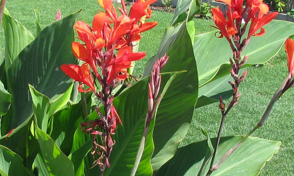- Высокая декоративность благодаря ярким красно-оранжевым цветкам и крупным листьям.