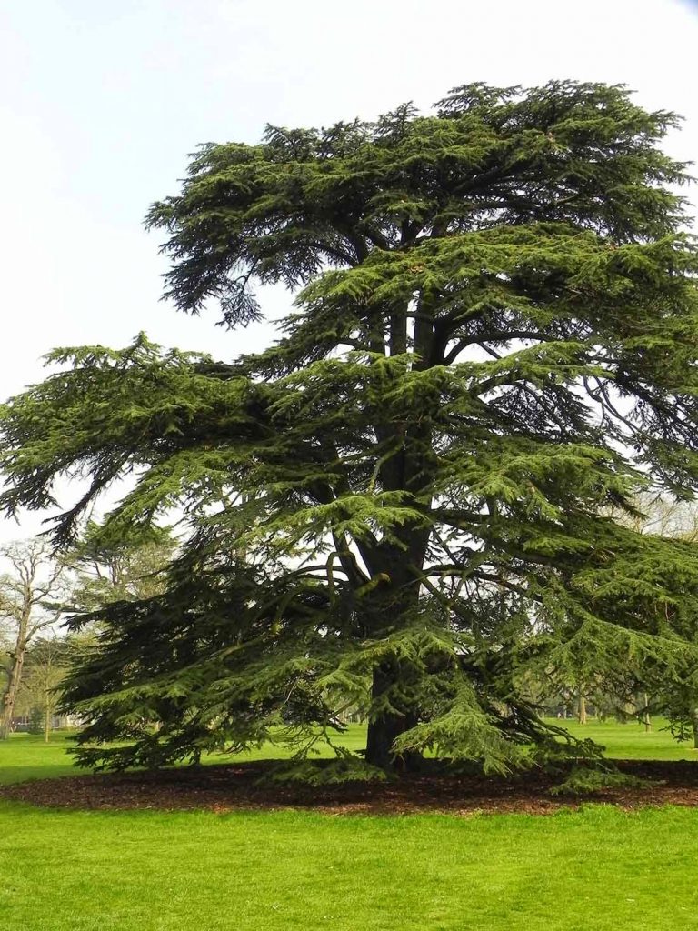 Крона кедра ливанского, типичная для сосновых, обычно имеет конусообразную форму, но иногда может быть и сферической. С возрастом, начиная примерно с 16-17 лет, ветви дерева начинают расти горизонтально, формируя слои. Нижние ветви обычно более крупные и массивные, в то время как верхние становятся более короткими и тонкими, придавая дереву вид, напоминающий вытянутый гриб.