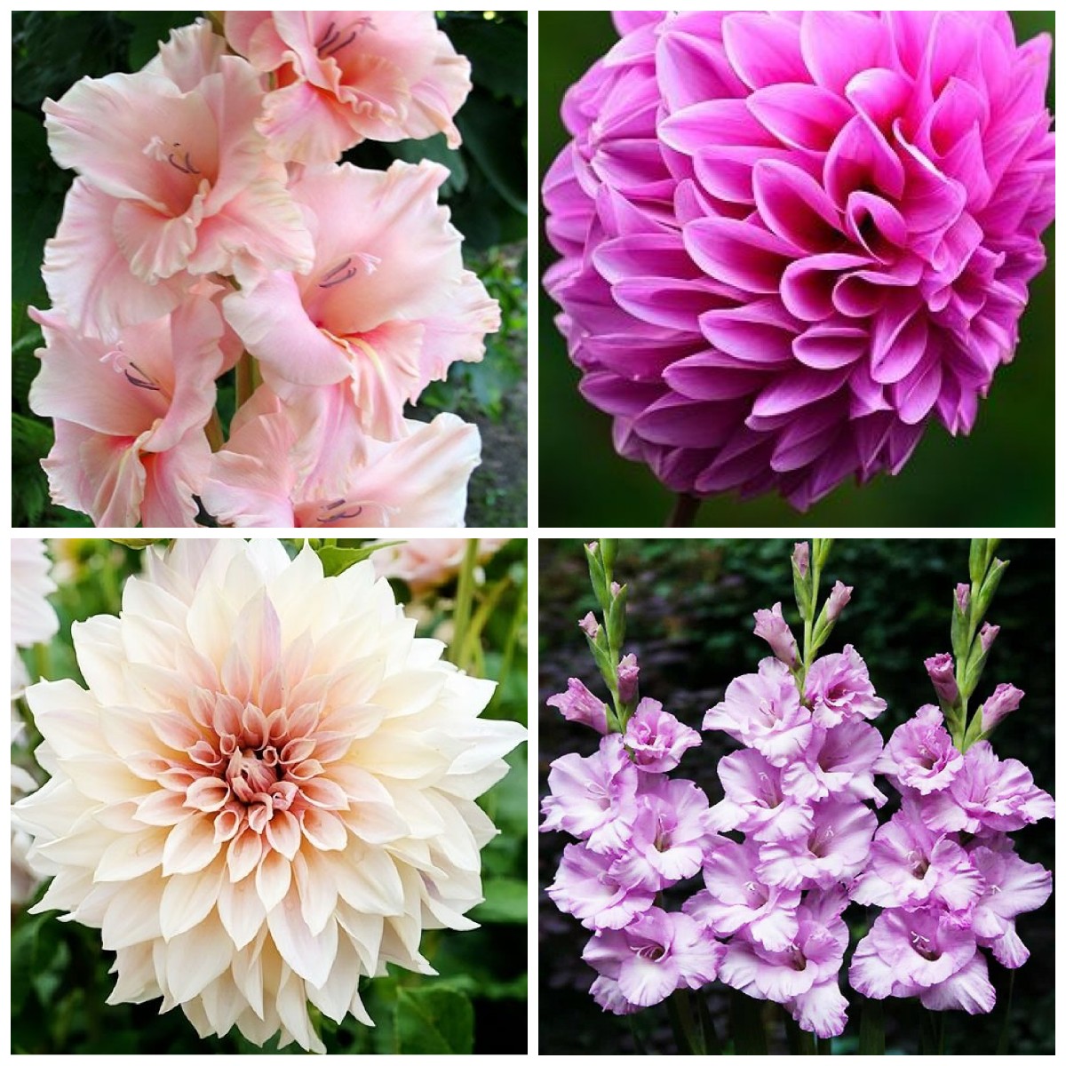 Луковицы гладиолусов и георгинов. Комплект №2 из 4 луковиц (Лаки Намбер, Кофе о Лейт, Шейди Рафл, Богиня Любви )