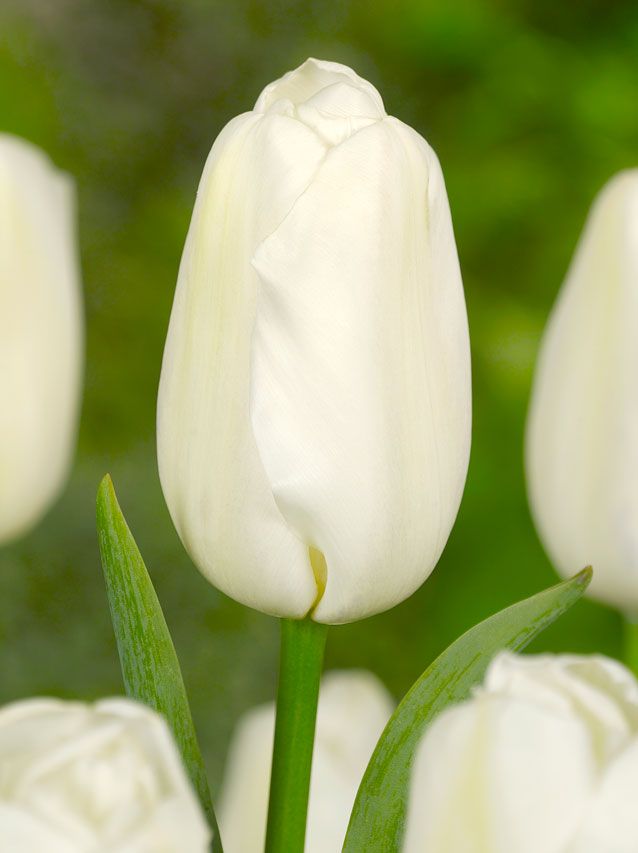 Тюльпаны сорта Snowboard (Сноуборд) получили свое название благодаря ассоциации с зимним видом спорта. Их элегантные бутоны правильной формы создают ощущение неземной чистоты. Молочно-белые цветы контрастируют с насыщенной зеленью листьев, словно объединяя в одном цветке зиму и лето. Этот сорт относится к гибридам класса Триумф. Растение отличается крупными размерами, высоким стеблем и густой зеленой листвой. Бутон имеет традиционную бокаловидную форму и достигает высоты до 7 см, обладая восхитительным снежно-белым оттенком, который прекрасно сочетается с ярко-зелеными листьями.